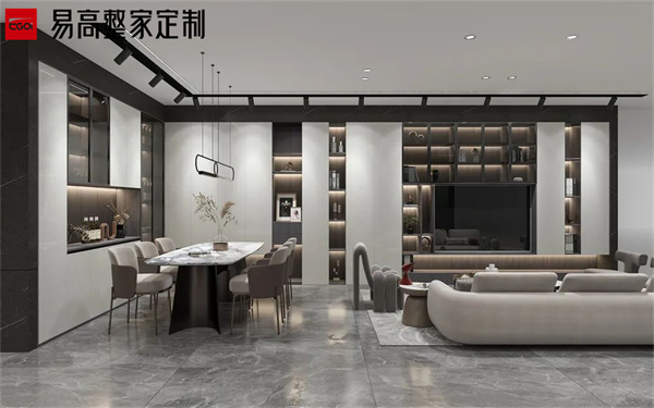 客廳定制是家庭活動的核心區域,定制家具可以優化空間布局。常見項目包括一體化設計的電視背景墻+電視柜,兼具裝飾與收納功能;沙發背景墻可結合書架或展示柜,增加藝術感;嵌入式或獨立式儲物柜則能有效提升收納能力。 餐廳定制主要圍繞餐桌和餐邊柜展開。定制餐桌可根據家庭人數選擇尺寸,采用折疊或伸縮設計以節省空間;餐邊柜則用于存放餐具、酒水,部分還可嵌入冰箱或烤箱,提升實用性。